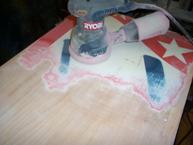 The last step in the rejuvenation of the underside is a complete 220 grit pass with the orbital sander along the plywood edges, and the base. This will remove all the ugly old dirty fingertip marks built up over the years of location rotation. It is then sealed with a coat of acrylic latex clear. Lastly, it is taped off. Yes, I know you may consider this overkill, but trust me for a show piece it’s not!