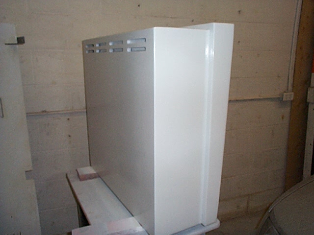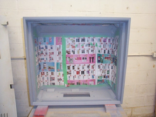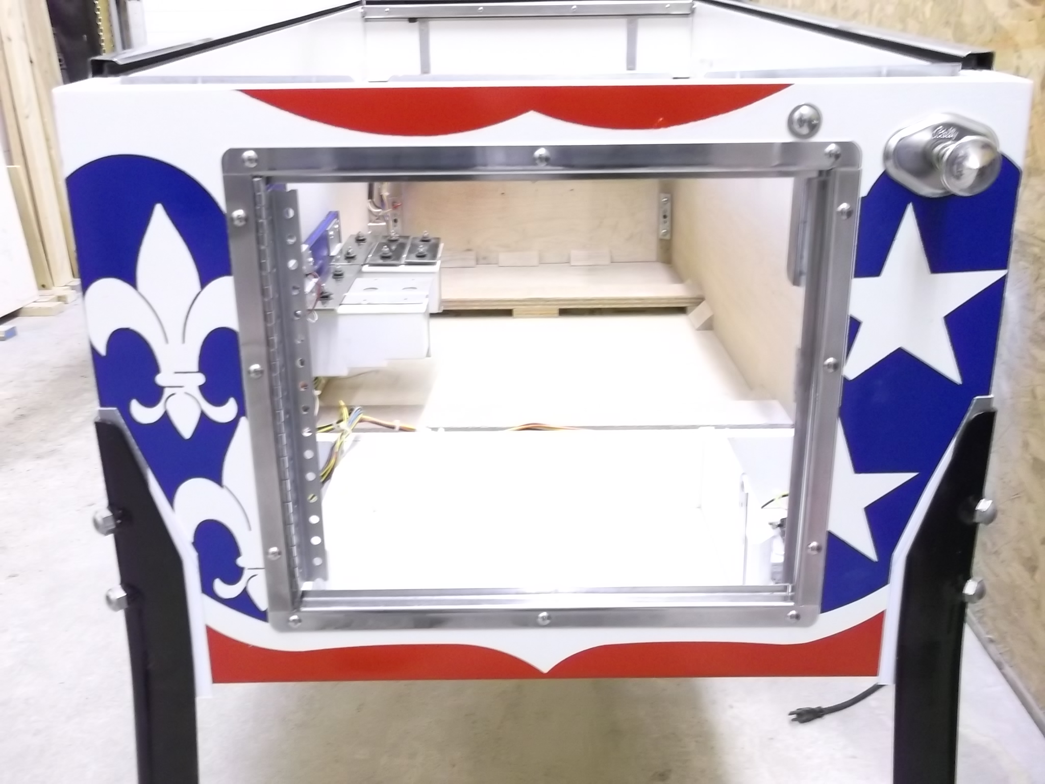 At this time the metal piece in the bottom front is cleaned and painted silver, with clear coat applied. For those of you that don’t know, the 18 gauge piece of steel was installed by the factory to prevent thieves from cutting out the coin box.